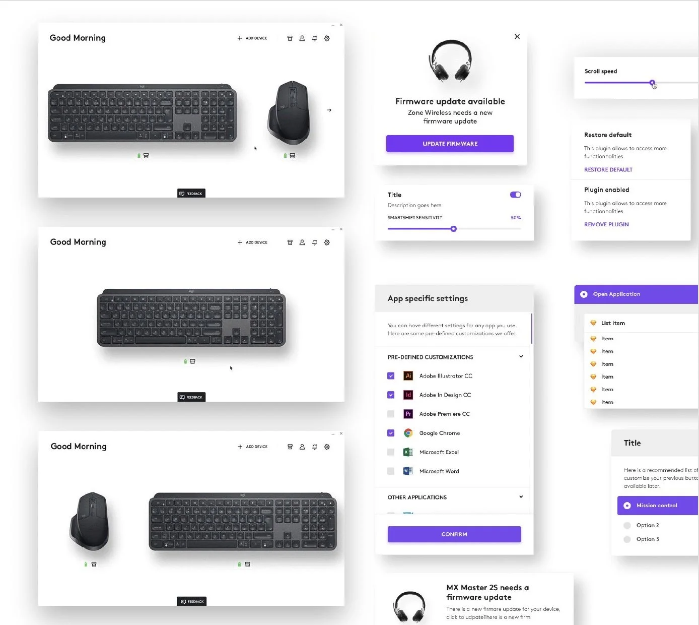 As a company not especially known for it’s software, under my leadership the Logitech UX team focused not only on developing best-in-class design language system and delivering incredible design but in researching user needs and validating user scenarios to ensure software provided value to the end user.